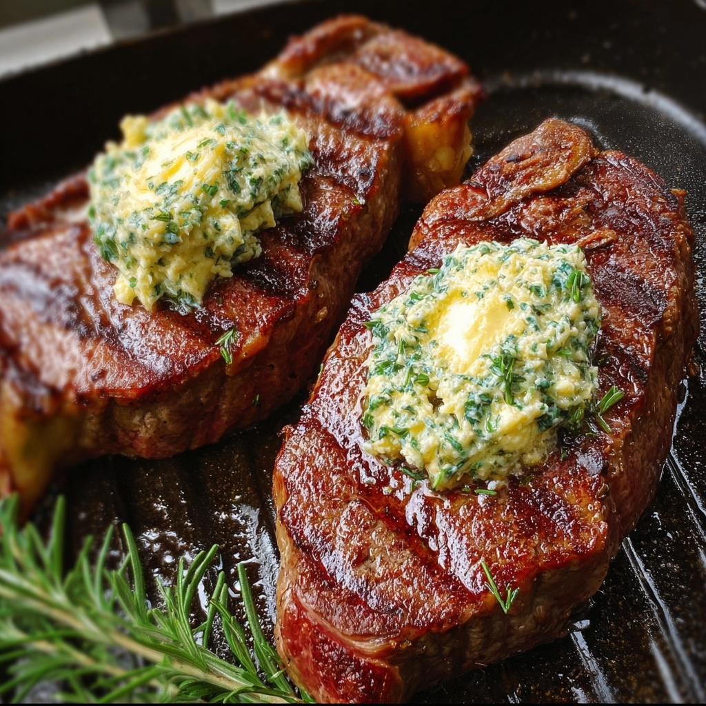 Once cooked, transfer your steaks to a cutting board or plate and let them rest for 5 minutes. Resting allows the juices to redistribute, delivering a moist, tender eating experience. Just before serving, top each steak with a generous dollop of the garlic butter that will melt into a luscious sauce.