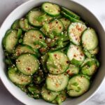 A quick and refreshing Asian Cucumber Salad featuring thinly sliced cucumbers in a tangy rice vinegar dressing with sesame oil, soy sauce, and a hint of garlic and spice. Perfect as a light side dish or accompaniment to grilled meats, rice bowls, or noodles.