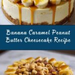 This Banana Caramel Peanut Butter Cheesecake is a rich and creamy dessert combining the sweetness of ripe bananas with the savory flavor of peanut butter and indulgent caramel. Featuring a crunchy graham cracker crust, a smooth peanut butter and banana-infused cream cheese filling, and a luscious caramel drizzle topped with chopped peanuts, this cheesecake is perfect for special occasions or any sweet craving.