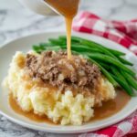 Beef Gravy Potatoes is a comforting American dish featuring tender roasted baby or Yukon Gold potatoes topped with a rich, savory ground beef gravy made from sautéed onions, garlic, and a blend of spices. Perfect as a hearty main course or a satisfying side dish, this recipe combines simple ingredients to create a delicious, home-style meal.
