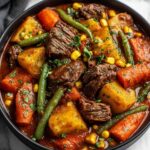 A hearty and comforting Beef Vegetable Soup packed with nutritious vegetables and tender beef stew meat, simmered in a flavorful broth with herbs and diced tomatoes. Perfect for chilly days or a wholesome family meal, this recipe can be prepared on the stovetop, in a crockpot, or an Instant Pot, making it versatile and easy to fit your cooking style.