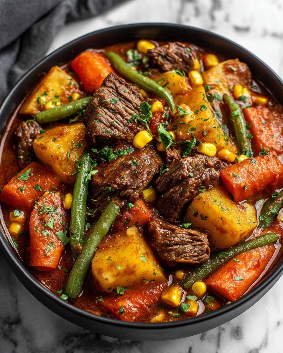 Reheat leftovers gently on the stove over medium-low heat, stirring occasionally to ensure even warming. If frozen, thaw overnight in the fridge before reheating for best results. Avoid boiling to keep the beef tender and the vegetables intact.