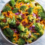 A vibrant and crunchy broccoli salad featuring fresh broccoli florets, crispy bacon, sharp cheddar cheese, and a creamy, tangy dressing. Perfectly chilled for a refreshing side dish that’s easy to prepare and loved by all.