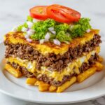 This Big Mac Casserole transforms the iconic flavors of the famous burger into a comforting and easy-to-make baked dish. Combining seasoned ground beef with a creamy mix of mayonnaise, ketchup, and mustard, then layered with cheddar cheese, fresh lettuce, pickles, tomatoes, onions, and topped with sesame seeds, this casserole offers all the beloved tastes of a Big Mac in a family-friendly casserole form. Perfect for a quick dinner that’s both nostalgic and satisfying.