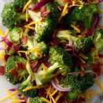 This Broccoli Salad Recipe features a crunchy and creamy combination of fresh broccoli, shredded cheddar cheese, crispy bacon, and red onion tossed in a tangy homemade dressing made with red wine vinegar, mayonnaise, and lemon juice. Ready in just 30 minutes, it’s a perfect side dish for picnics, barbecues, or any casual gathering.