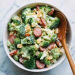 Pour the dressing over the mixed salad ingredients and toss gently but thoroughly so every piece gets that luscious coating. Cover the bowl tightly and refrigerate for at least 30 minutes. This chill time lets the flavors meld and the broccoli soak in the dressing’s delicious notes, making every bite harmonious and refreshing.