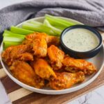 - Optional toppings – chopped green onions, blue cheese or ranch dressing, celery sticks: These add freshness and cooling contrast to the spicy chicken.