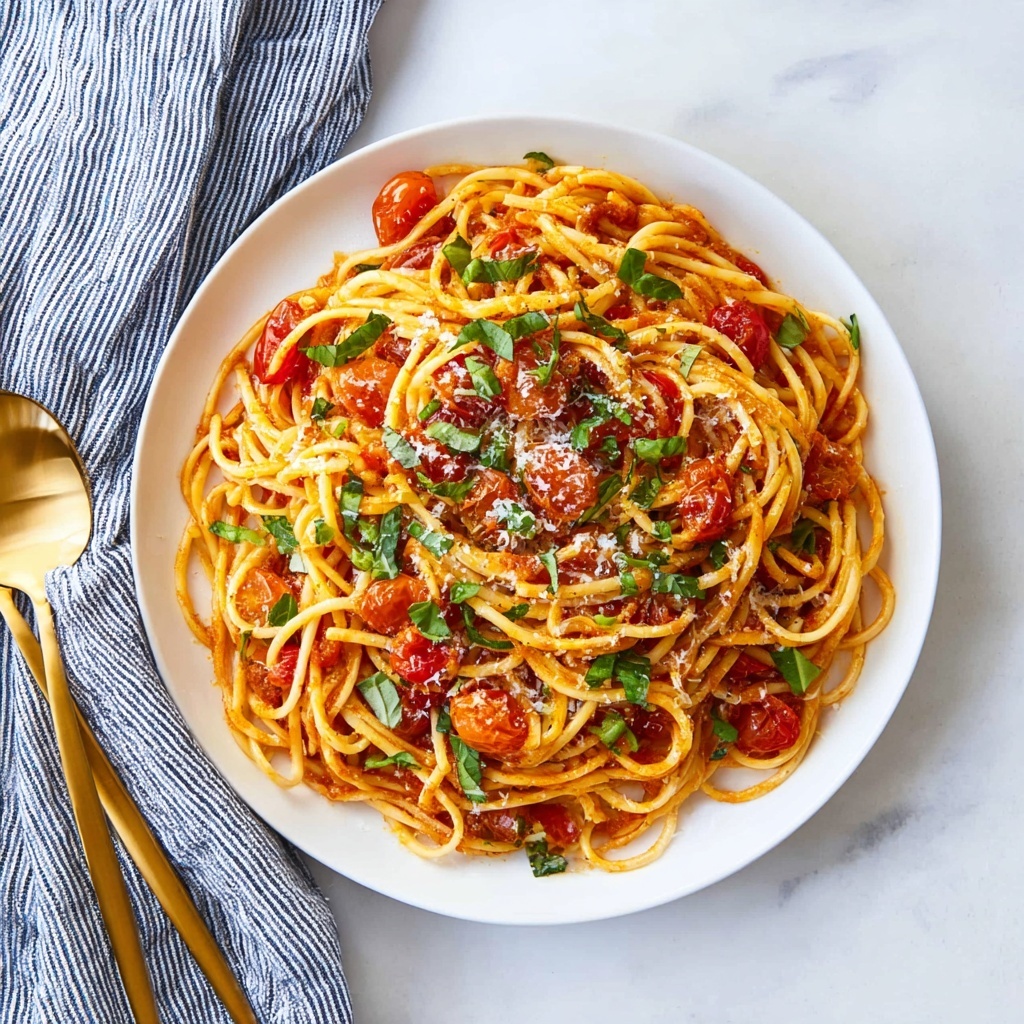 For a dinner party or special occasion, try plating your Burst Cherry Tomato Pasta Recipe in shallow bowls to showcase the sauce beautifully. Garnish with edible flowers or finely chopped herbs for a pop of color. Serving it family-style in a large rustic bowl also invites everyone to dig in and enjoy the communal, cozy feeling this dish inspires.