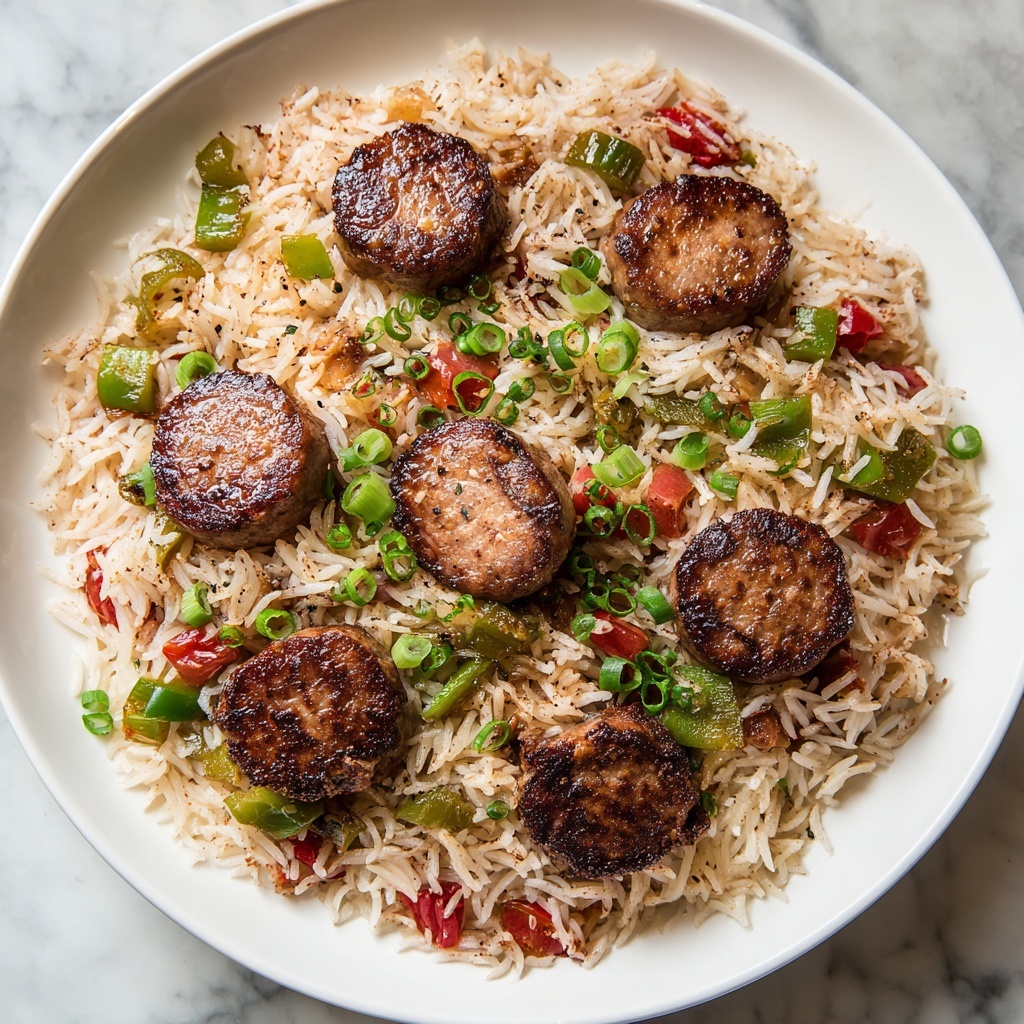 - Rest and Finish: Remove the skillet from heat and keep the lid on, allowing the dish to rest for 5 minutes. After resting, remove the lid and gently fold the sausage and rice to combine evenly. Garnish with sliced green onions before serving.