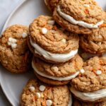 Delight in these soft and flavorful Carrot Cake Cookies, combining the warm spices and moist texture of classic carrot cake into a convenient cookie form. Topped with creamy, tangy cream cheese frosting, these treats are perfect for any occasion, offering a perfect balance of sweetness, spice, and texture with grated carrots, oats, walnuts, and raisins.