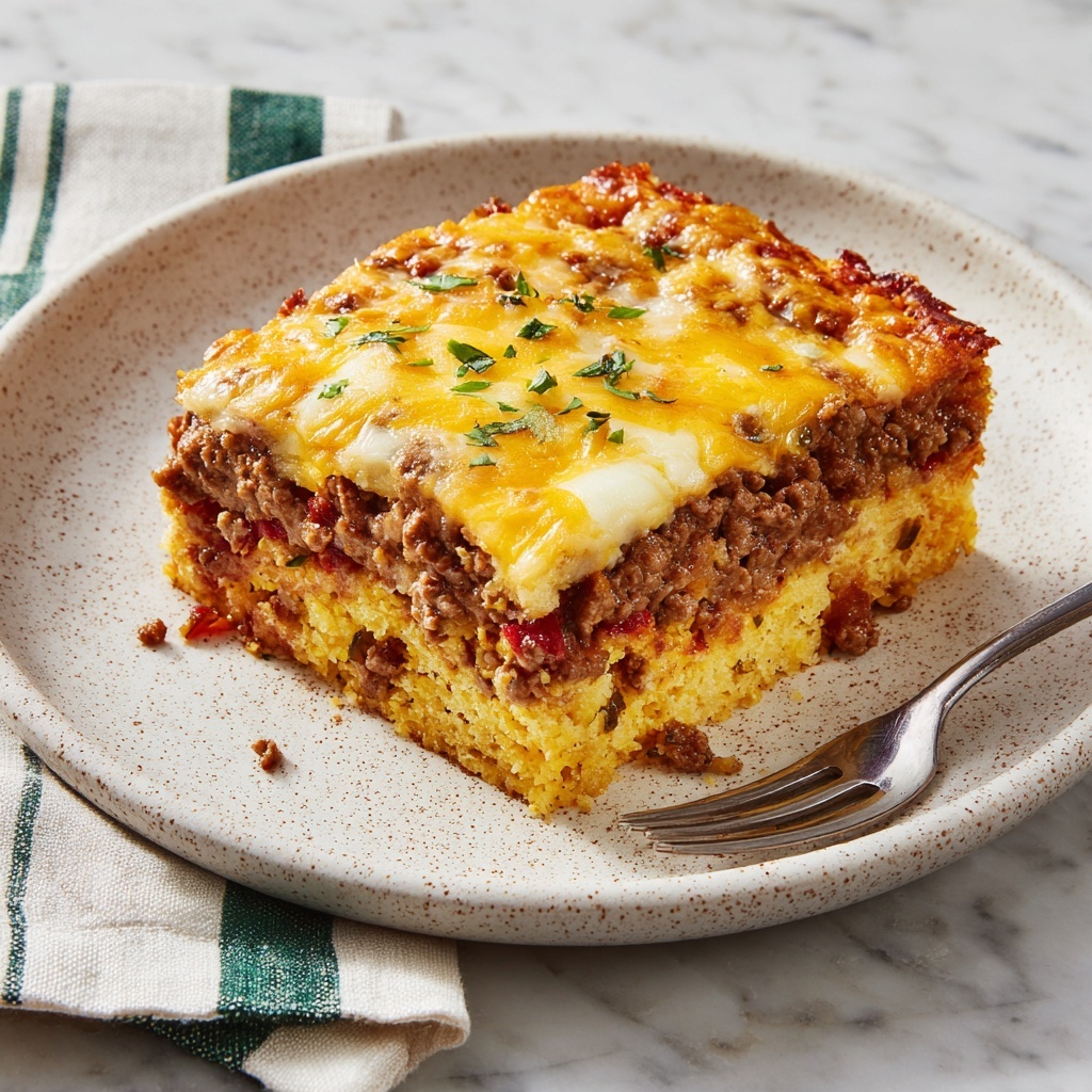 Bake the casserole uncovered for 25 to 30 minutes until the cheese is melted, bubbly, and just starting to brown. Once out of the oven, allow it to rest for 5 minutes before slicing. This resting time helps the layers set and makes serving a breeze. If you like, garnish with some chopped green onions for a touch of color and fresh flavor.