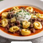 Cheese tortellini is key to this recipe’s unique fusion, delivering creamy pockets that melt into the beef and sauce. That said, smaller pasta like ravioli or filled shells can work as creative swaps if tortellini isn’t available.