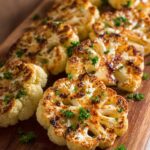 Cheesy Cauliflower Steaks are a simple, delicious vegetarian dish featuring thick slices of cauliflower roasted to tender perfection and topped with melted cheese for a satisfying, flavorful meal or side dish.