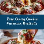 This Cheesy Chicken Parmesan Meatballs recipe offers a delicious twist on classic chicken meatballs by simmering them in rich marinara sauce and topping with generous amounts of parmesan and mozzarella cheese before broiling for a perfect golden finish. Ready in just 40 minutes, these savory meatballs are ideal for a comforting family dinner.