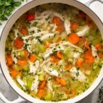 • To save time, use pre-cooked or rotisserie chicken, adding it in the soup near the end instead of cooking raw chicken breast.