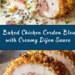 This classic Chicken Cordon Bleu recipe features tender chicken breasts stuffed with savory ham and melted Swiss cheese, coated in a seasoned breadcrumb crust, and baked to perfection. Finished with a creamy Dijon mustard sauce, it makes for an elegant yet easy-to-make dinner that serves four.