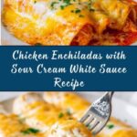Delicious and creamy chicken enchiladas baked to perfection with a rich sour cream white sauce and Monterey Jack cheese, perfect for a comforting family dinner.