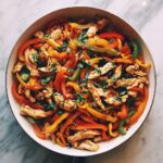 - Combine Chicken and Vegetables: Return the cooked chicken to the skillet with the sautéed vegetables. Toss everything together and cook for an additional 1 to 2 minutes, allowing the flavors to meld and the mixture to heat through.