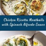 Delicious and creamy Chicken Ricotta Meatballs served with a rich Spinach Alfredo Sauce. This Italian-American main course combines tender ground chicken meatballs enriched with ricotta cheese, baked to golden perfection, and topped with a luscious homemade spinach Alfredo sauce. Perfect for a comforting weeknight dinner or a special meal to impress your family.