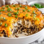 This hearty Chicken Wild Rice Casserole combines tender shredded chicken, nutty wild rice, and a medley of sautéed vegetables in a creamy, cheesy sauce. Perfect for a comforting family meal, it is baked to perfection with a golden melted cheese topping.
