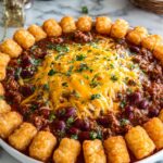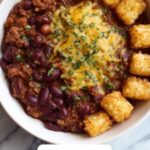 Chili Tot Bake is a hearty and comforting casserole combining flavorful ground beef chili, kidney and pinto beans, topped with crispy golden tater tots. This easy-to-make dish bakes in the oven to create a perfect family-friendly meal that’s both satisfying and delicious.