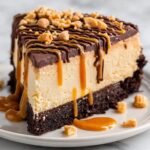 - Add topping and final chill: Spread the chocolate ganache evenly over the chilled cheesecake. Sprinkle the chopped peanut butter candies on top. Return the cheesecake to the refrigerator for an additional 20–30 minutes to set the ganache.