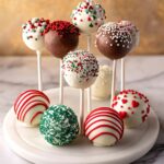 Celebrate the festive season with these delightful Christmas Cake Pops made from moist cake crumbled and mixed with creamy frosting, coated in colorful white chocolate or candy melts, and finished with vibrant holiday sprinkles. Perfect for parties and gifting during the holidays.
