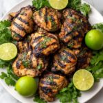 Fresh cilantro and lime wedges are classic garnishes that elevate the flavor and presentation of the dish. Their bright, fresh taste provides a wonderful contrast to the carefully marinated chicken, while the lime wedges invite a little extra tang with each bite.