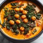 This Coconut Curry Chickpeas recipe is a rich and hearty vegetarian dish combining the creaminess of coconut milk with the warmth of curry spices. It’s a comforting, nutritious meal perfect for a quick weeknight dinner or meal prepping, featuring tender chickpeas and vibrant kale simmered in a flavorful tomato and coconut sauce.