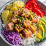 For a vegan twist, skip the salmon and add marinated tofu or tempeh in its place. The coconut rice base and fresh veggies will still provide that satisfying tropical flavor and texture.
