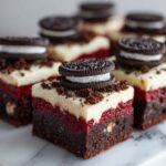 These Cookies & Cream Red Velvet Brownies combine the rich, velvety flavor of red velvet cake with a decadent cream cheese swirl and a crunchy Oreo cookie topping. Quick to prepare and baked to perfection, they make a delightful dessert that’s both visually appealing and irresistibly tasty.