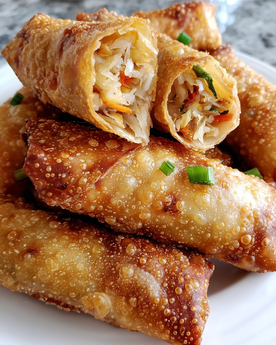 Sprinkle some finely chopped green onions or sesame seeds over the hot egg rolls for a fresh, vibrant touch. A light drizzle of sweet chili sauce or a sprinkle of crushed red pepper flakes can add an exciting kick to the dish as well.