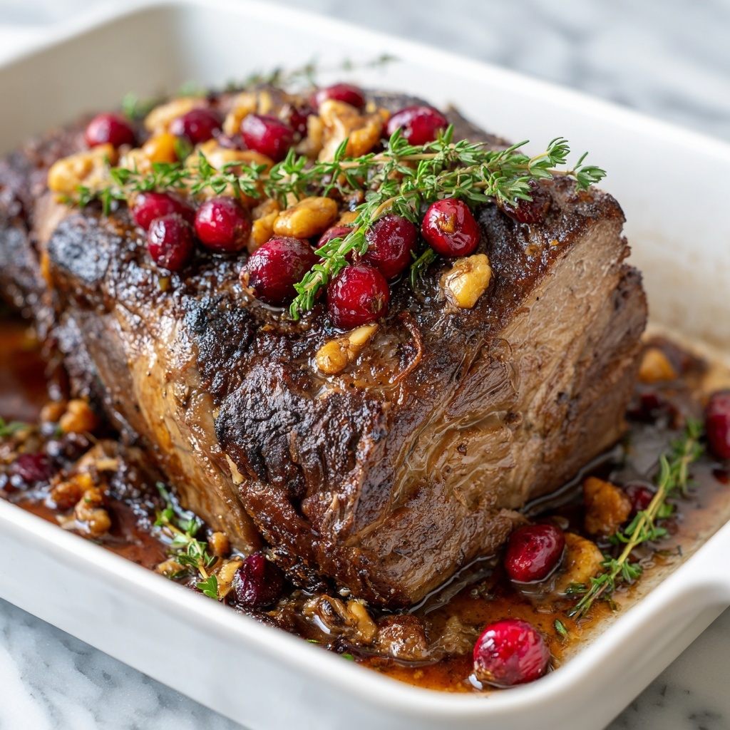 Fresh rosemary sprigs or a few whole cranberries scattered on the platter make for elegant, simple garnishes that enhance the visual appeal and aroma of your roast. A sprinkle of cracked black pepper right before serving adds a touch of rustic charm.
