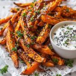 This Crispy Baked Sweet Potato Fries with Roasted Garlic Tahini Yogurt Dip Recipe is perfect as a side to grilled vegetables, falafel, or a Mediterranean salad. Its balance of sweet, savory, and tangy notes means it pairs beautifully with many main courses or can stand proudly as a shareable appetizer.