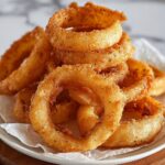The secret to these Crispy Fried Onion Rings Recipe’s crunchiness lies in the triple coating method: flour to adhere the batter, a wet egg and milk batter for moisture, and breadcrumbs for that perfect golden crust.