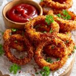 Crispy onion rings pair wonderfully with classic American favorites like juicy burgers, grilled steaks, or BBQ ribs. They’re also fantastic alongside creamy coleslaw or loaded fries, turning your meal into a full-on comfort feast.
