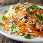 Crunch Salad is a vibrant, refreshing Asian-inspired cabbage slaw brimming with shredded green and red cabbage, crisp carrots, red bell pepper, snap peas, and fresh herbs. Tossed in a zesty sesame-ginger dressing with a touch of heat, this no-cook salad offers the perfect balance of crunch and flavor. Perfect as a light side dish or a base for protein additions, it’s easy to whip up in just 15 minutes.
