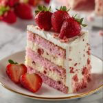 If you love strawberries in every bite, then this Double Strawberry Cake Recipe is going to be your new go-to dessert. It beautifully marries the bright, fruity essence of fresh strawberries with the rich, creamy texture of a luscious strawberry-infused frosting. This cake is a celebration of strawberry flavor at its finest, perfect for any occasion where you want to impress friends or just treat yourself to something truly special. The softness of the cake combined with the vibrant pink frosting and fresh slices on top creates a picture-perfect dessert that tastes as wonderful as it looks.