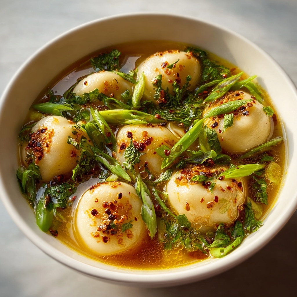 Before serving, taste your broth and adjust seasoning with extra soy sauce or a pinch of white pepper if you like a little more heat. Turn off the heat, then ladle the steaming soup into bowls. Drizzle with a final touch of sesame oil and sprinkle chopped scallions on top. These finishing touches add luxurious aroma and a bit of freshness that make the dish truly unforgettable.