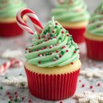 - Decorate: Garnish the frosted cupcakes with mini candy canes, red and green sprinkles, and edible snowflake decorations or fondant snowflakes. Lightly dust with powdered sugar to mimic a snowy effect. Optionally place mini gingerbread cookies on top for extra festive flair.
