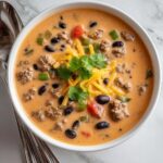 This Easy Creamy Taco Soup combines seasoned ground beef, beans, corn, and diced tomatoes with green chilies in a rich, creamy broth made smooth with cream cheese and optional heavy cream. It’s a hearty, flavorful, and comforting one-pot meal perfect for busy weeknights, topped with cheddar cheese and fresh cilantro for a festive finish.