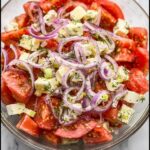 This Easy Tomato Salad Recipe is best served fresh, so freezing is not recommended. The texture of tomatoes and cucumbers changes significantly when frozen, and the dressing might separate upon thawing.