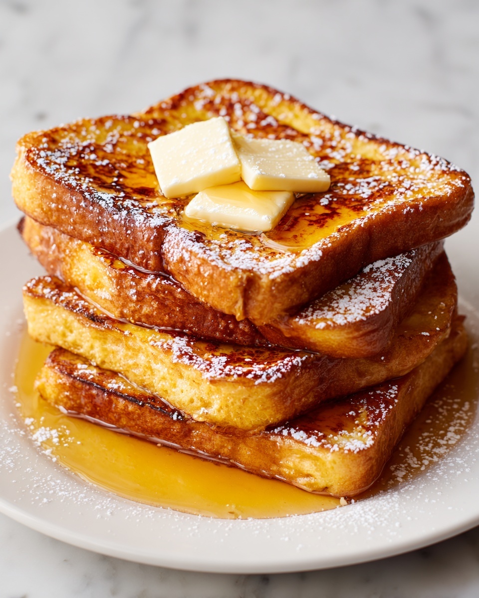 A classic and indulgent French Toast recipe featuring thick-cut brioche or challah bread soaked in a rich mixture of eggs, milk, cream, and warm spices, pan-fried to golden perfection and served with maple syrup, powdered sugar, and fresh berries.