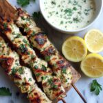 These skewers pair wonderfully with light, Mediterranean accompaniments such as warm pita bread, a crisp cucumber and tomato salad, or even fluffy couscous. A simple Greek salad with feta and olives adds a satisfying crunch and balances the richness of the chicken and sauce. Don’t forget to serve extra tzatziki on the side—it’s perfect for dipping!