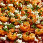 Greek Shrimp with Feta and Tomatoes is a vibrant Mediterranean dish combining succulent shrimp baked in a savory tomato sauce with garlic, onions, and herbs, topped with creamy feta cheese. This recipe is quick to prepare, perfect for a healthy, flavorful dinner served with bread, rice, or orzo.