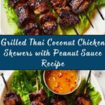 These Grilled Thai Coconut Chicken Skewers combine tender dark meat chicken marinated in a blend of ginger, garlic, soy sauce, and coconut cream, then grilled to perfection with a sweet and savory coconut cream glaze. Served with a quick and easy peanut sauce, they make a delicious and vibrant appetizer or main dish with authentic Thai flavors.