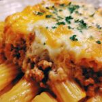 - Assemble the casserole: Preheat your oven to 350°F (175°C). Transfer the beef and pasta mixture into a greased 9×13-inch baking dish. Sprinkle additional shredded cheddar cheese on top.