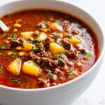 If you’re craving something cozy, comforting, and packed with bold flavors, this Ground Beef Enchilada Soup Recipe is exactly what you need. Imagine a rich, creamy broth bursting with the smoky warmth of enchilada sauce, tender ground beef, and fresh veggies, all topped with crunchy tortilla chips and melty cheese. It’s like your favorite enchilada reinvented as a soul-satisfying bowl of soup that comes together effortlessly in just about 35 minutes. Whether it’s a weeknight dinner or a casual lunch with friends, this soup hits all the right notes, making it an instant family favorite.