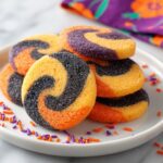 Halloween pinwheel cookies are festive, buttery sugar cookies swirled with bold Halloween colors like orange, purple, and black. These eye-catching treats are perfect for spooky season parties, trick-or-treat handouts, or just a fun baking project with kids.