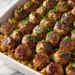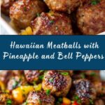 These Hawaiian Meatballs are a deliciously sweet and savory dish combining tender meatballs with vibrant bell peppers, pineapple chunks, and a tangy BBQ sauce. Cooked in a skillet for an easy weeknight meal, they’re served over rice and garnished with fresh green onions and sesame seeds for a perfect balance of flavors and textures.